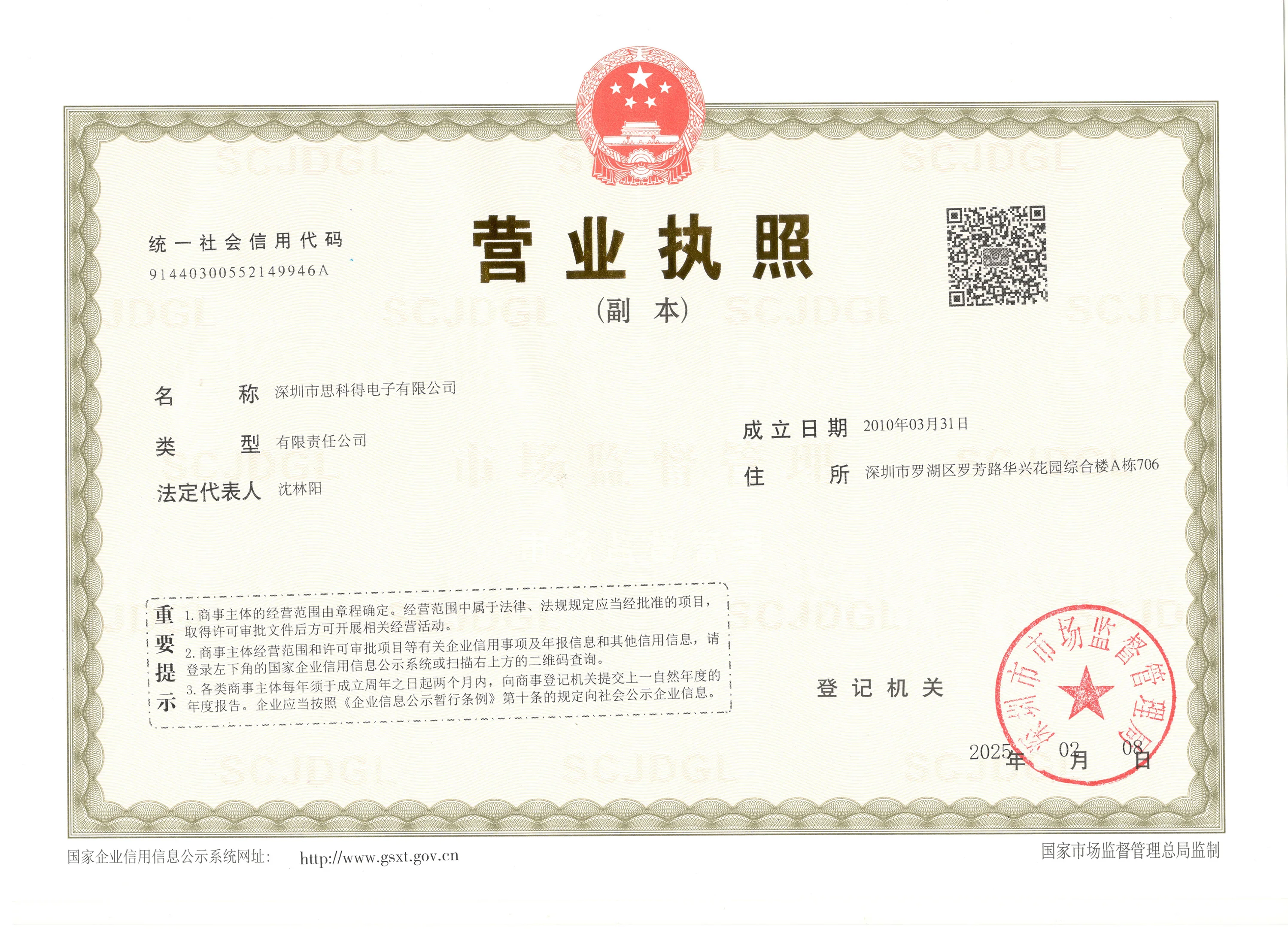 Registered address : 706, Building A, Huaxing Garden Comprehensive Building, Luofang Road Shenzhen Guangdong China